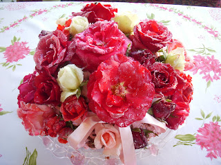 - bir tepsiye dizin ve fırının fan bölümünü çalıştırırak en düşük ayarad soğuk üflemesini sağlayarak az bir süre kurutun güllerin üzerindeki şekeri.